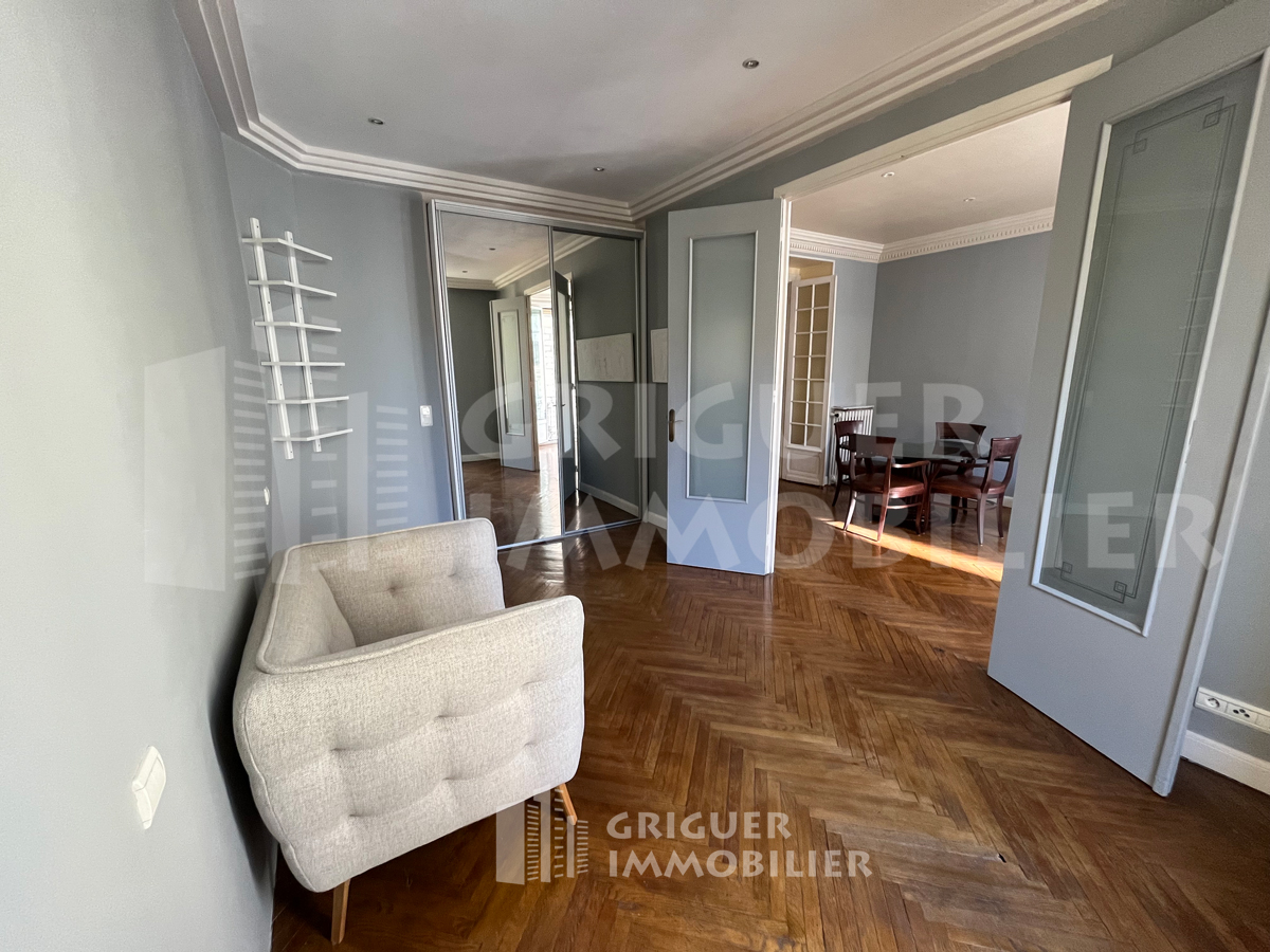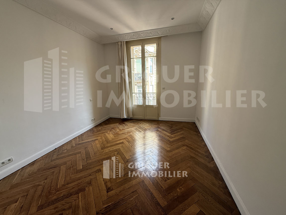Dans le centre ville de Nice, à la croisée du bd Maréchal Joffre et de la rue de Rivoli, à deux pas du Negresco, de la Promenade des Anglais, des commerces et de ligne 2 du tramway, location au 3eme étage d’un bel immeuble bourgeois d’un appartement non meublé de 3 pièces de 83 m². L’appartement se compose d’un entrée de 9 m², d’un séjour de 20 m², de deux chambres de 14 m² dont une attenante au séjour, d’une cuisine indépendante de 9 m² donnant sur balcon, d’une salle de bains, d’un WC indépendant, d’une buanderie de 5 m². Double vitrage, climatisation réversible, parquet au sol, nombreux rangement. Appartement en parfait état, lumineux et ensoleillé, traversant SUD / NORD.