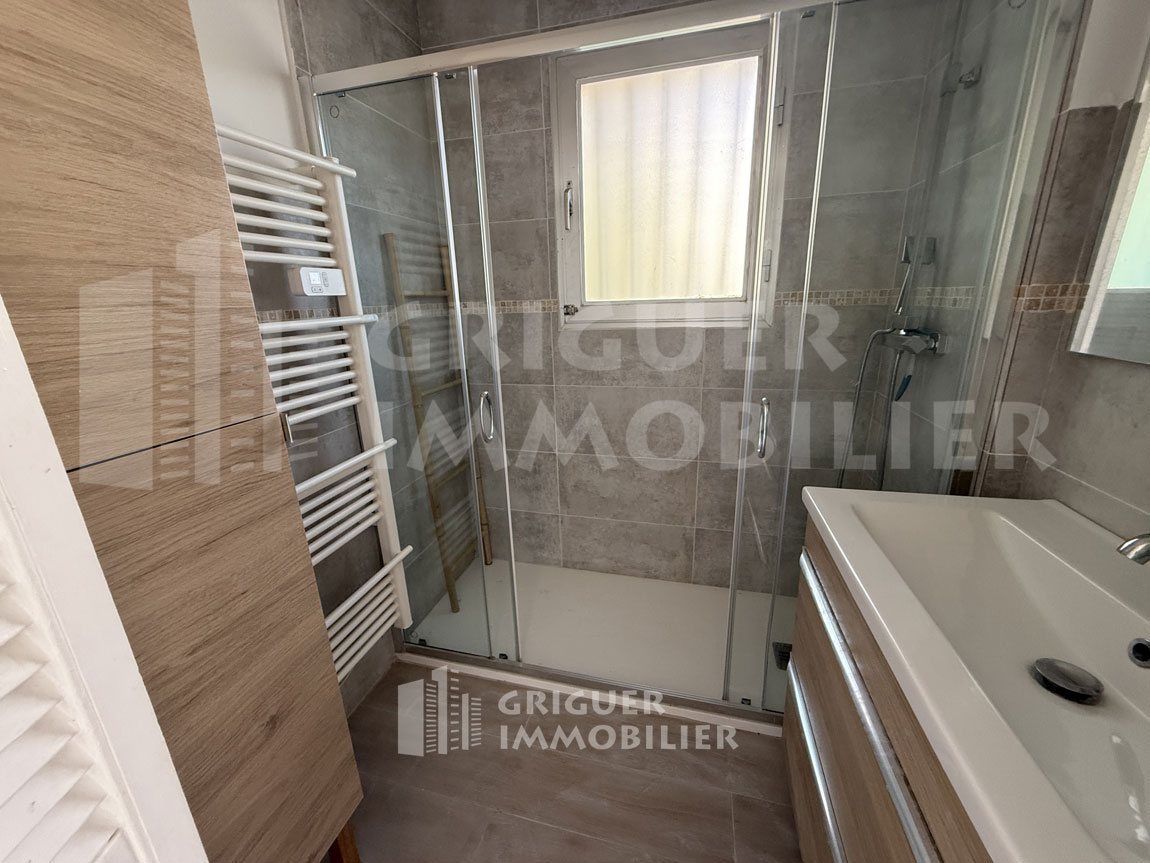 toutes les pièces donnent sur un extérieur. séjour de 21,50 m² , cuisine semi ouverte de 6.28 m² donnant sur la grande terrasse, une chambre de 12.32 m² donnant sur jardinet de 19 m² et une chambre de 10 m² donnant sur la terrasse , une salle de douche avec fenêtre, un WC indépendant.