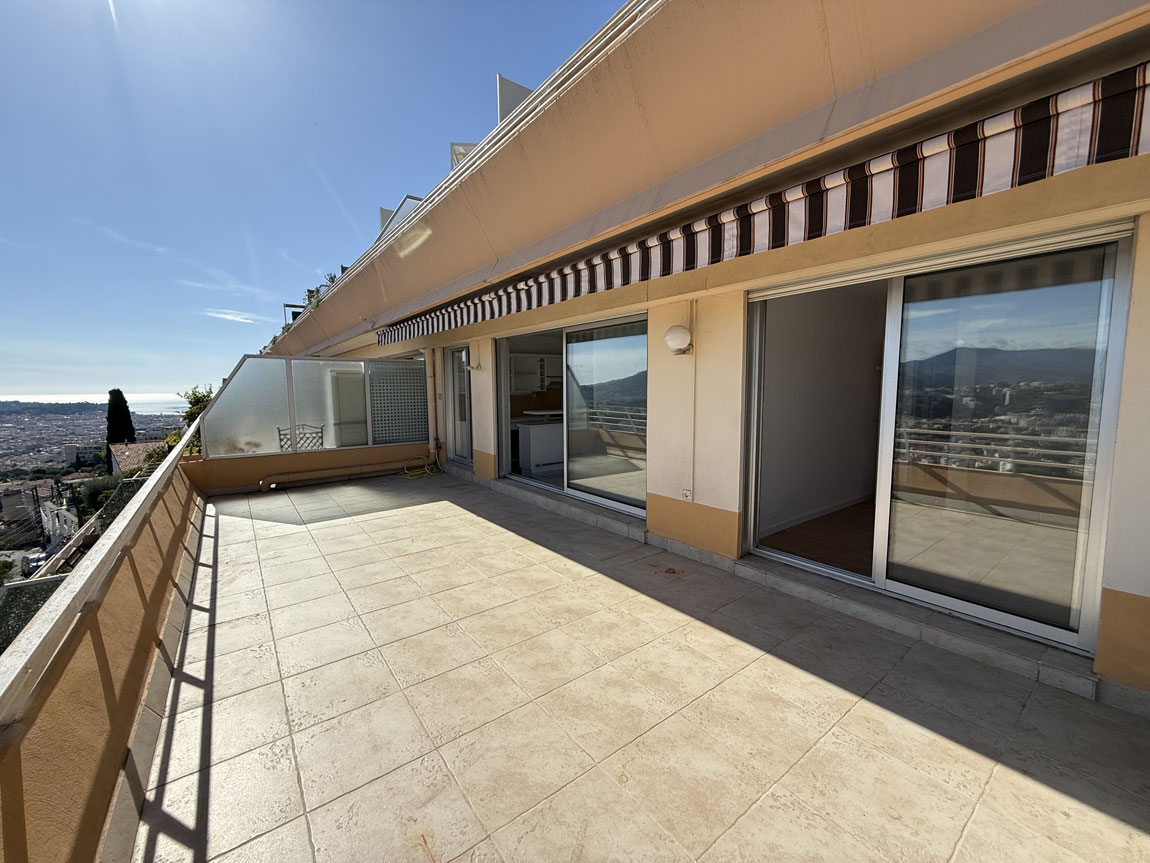 Dans une copropriété située sur les hauteurs de Nice, sur l’avenue de Pessicart, appartement 3 pièces de 63 m² + 29 m² de terrasse et 19 m² de jardinet en étage élevé